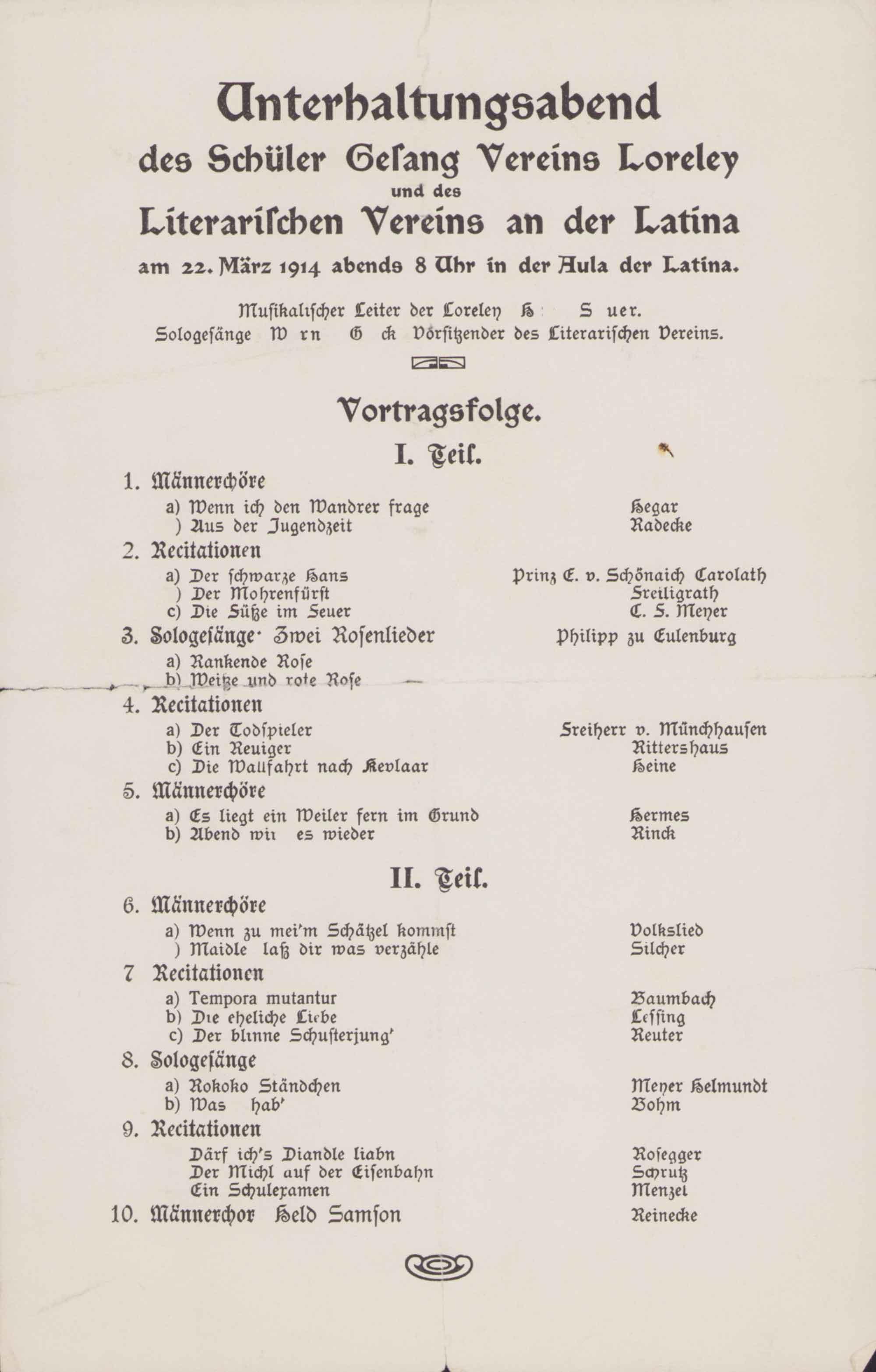Mitglieder des Schülergesangvereins Loreley. Halle, Wintersemester 1893/94
