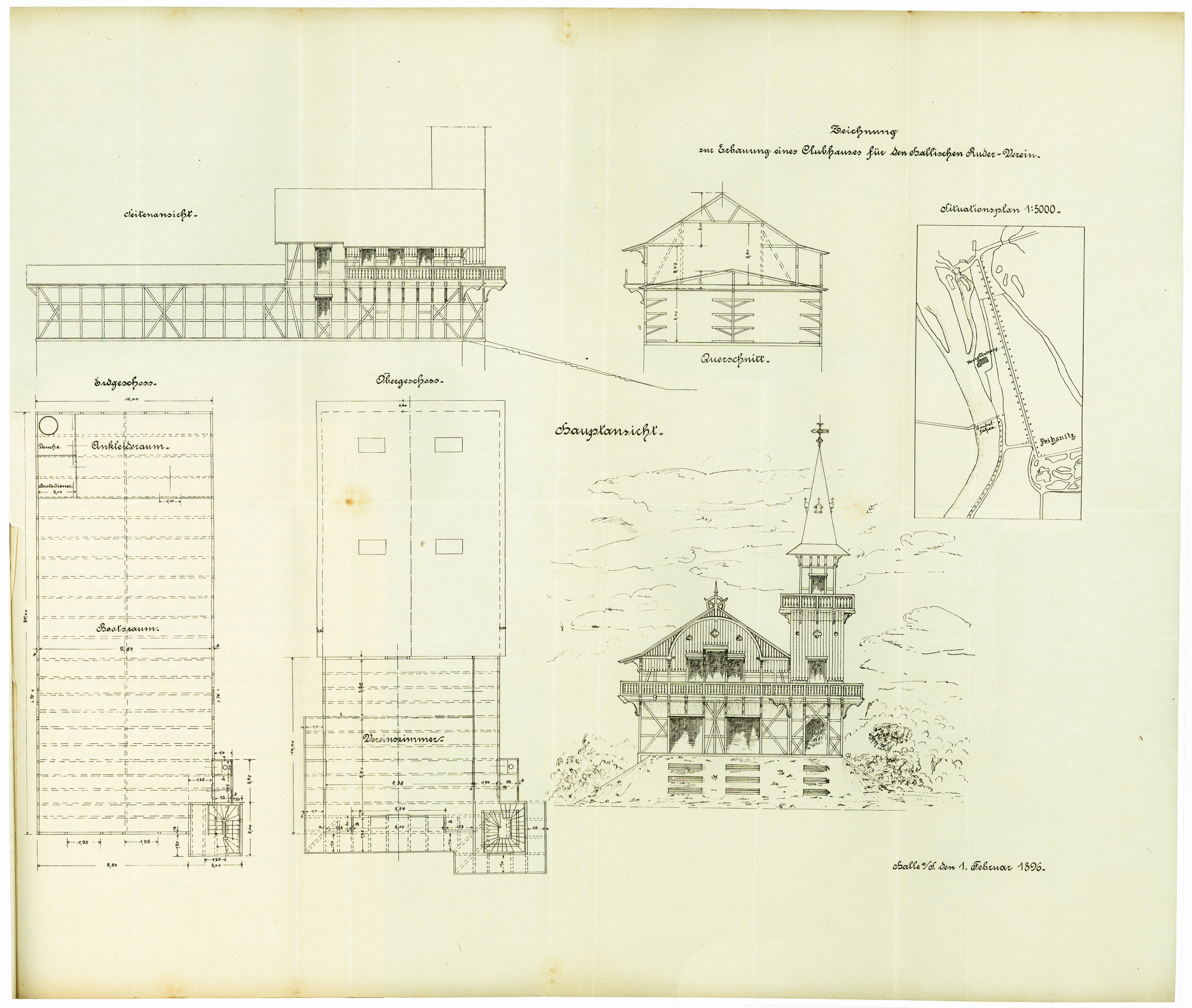 Die Neue Turnhalle. Zeichnung von Albert Dewerzeny.