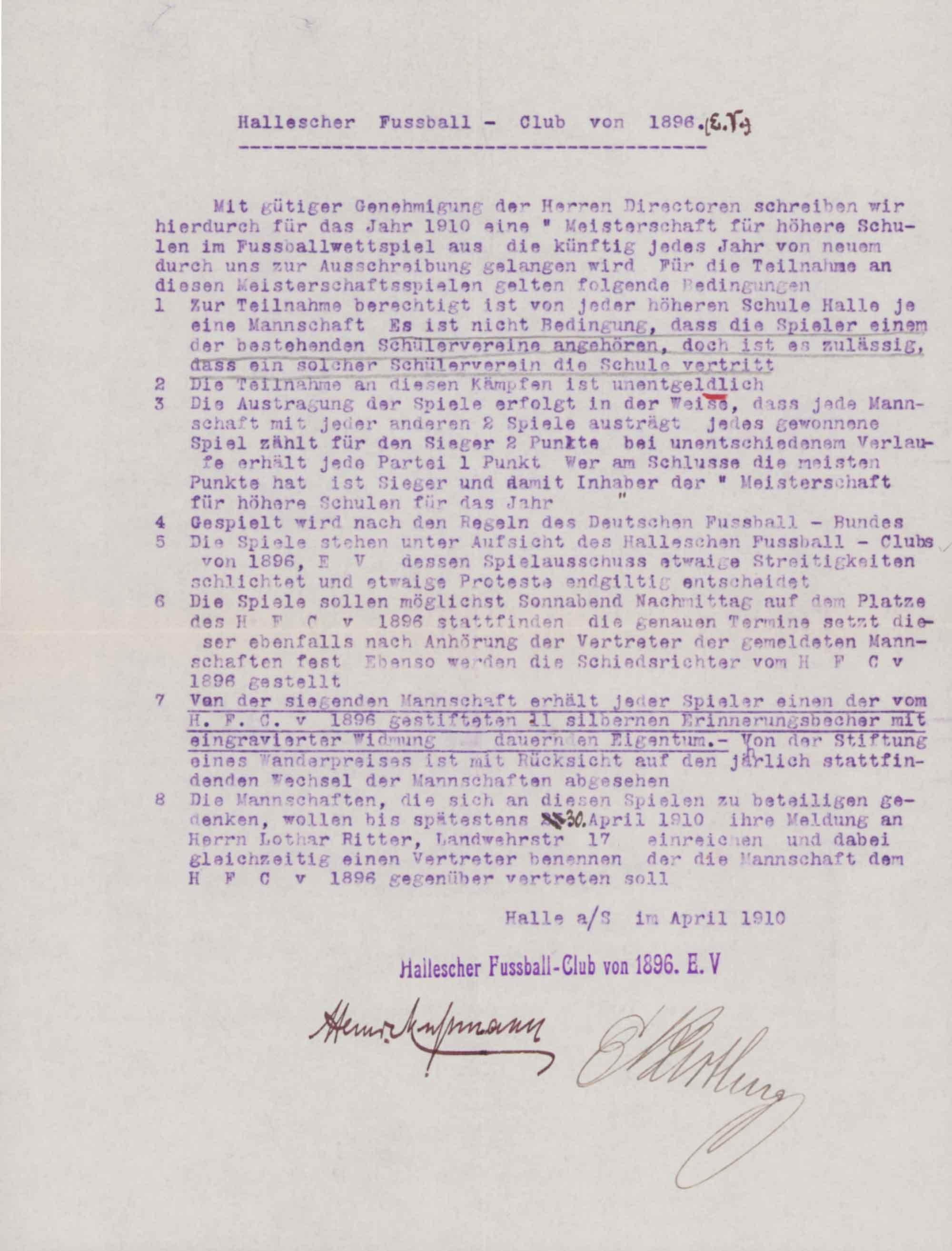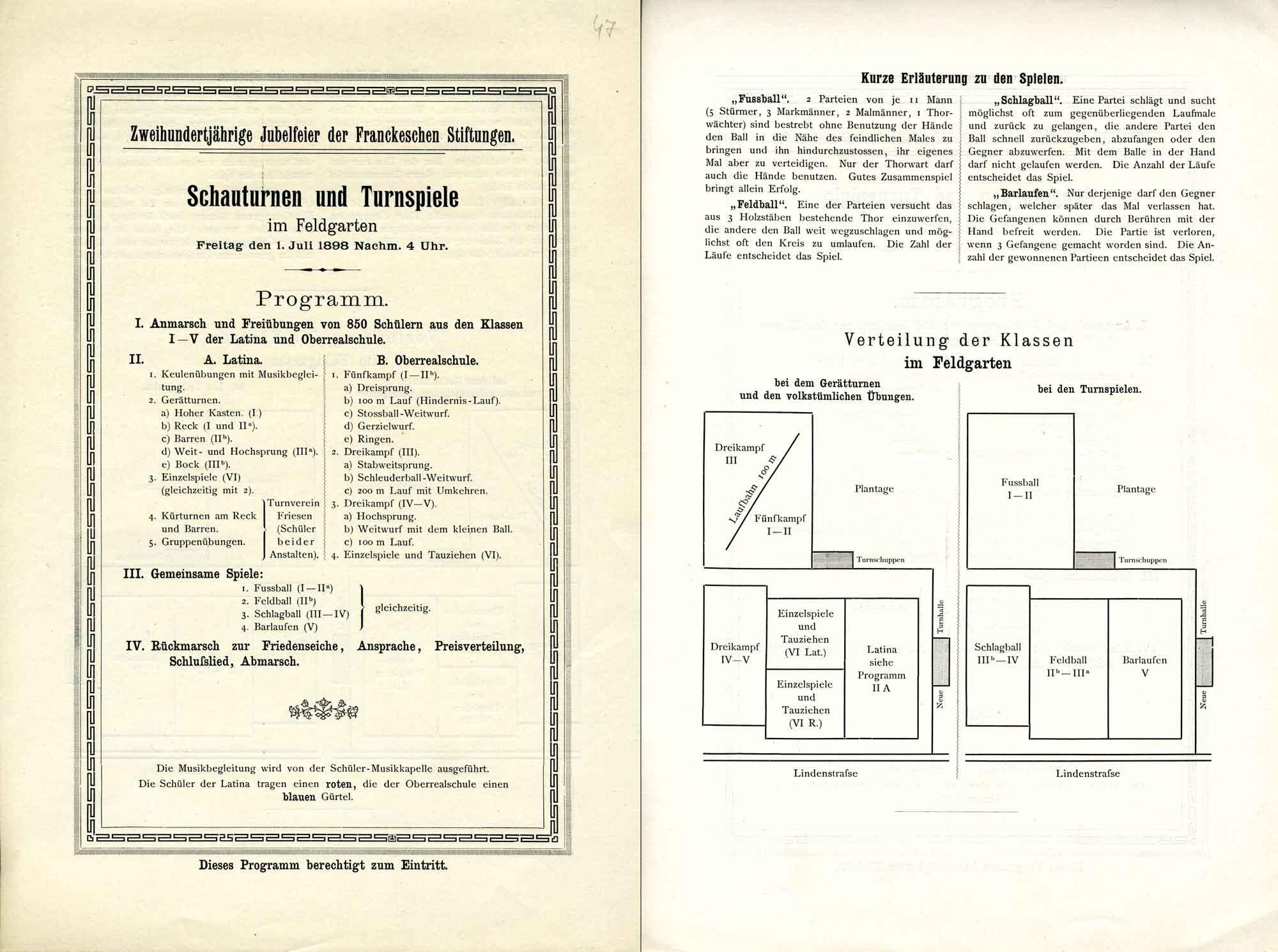 Die Schulen und Schülerheime hatten jeweils eigene Fußballvereine und Mannschaften, die sich in Pokalspielen gegenüberstanden, aber auch gegen Schulmannschaften anderer Städte antraten. Der »Fußballstreit« an den Franckeschen Stiftungen wurde 1897 dadurch beendet, dass das Direktorium die Auflösung der Fußballvereine verfügte.