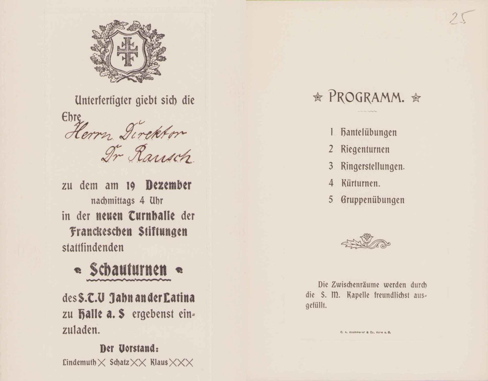 1893 gründeten 15 Schüler der Latina mit Genehmigung des Direktors einen zweiten Turnverein, den Schülerturnverein Jahn mit den Vereinsfarben schwarz–rot–gold. Er war nach dem Turnvater Friedrich Ludwig Jahn (1778–1852) benannt. Dieser Verein war für die Stadtschüler in den Stiftungen gedacht. Er hatte den Zweck, die körperliche Kraft und Gewandtheit seiner Mitglieder durch regelmäßig wiederkehrende Turn- und Spielübungen zu fördern und darüber hinaus die Freundschaft und Kameradschaft unter den Schülern zu pflegen.